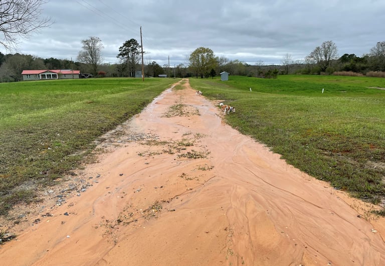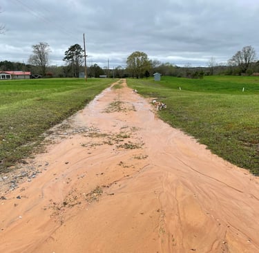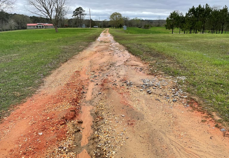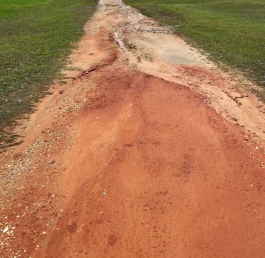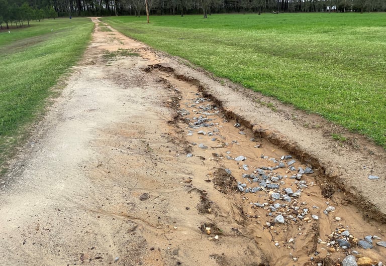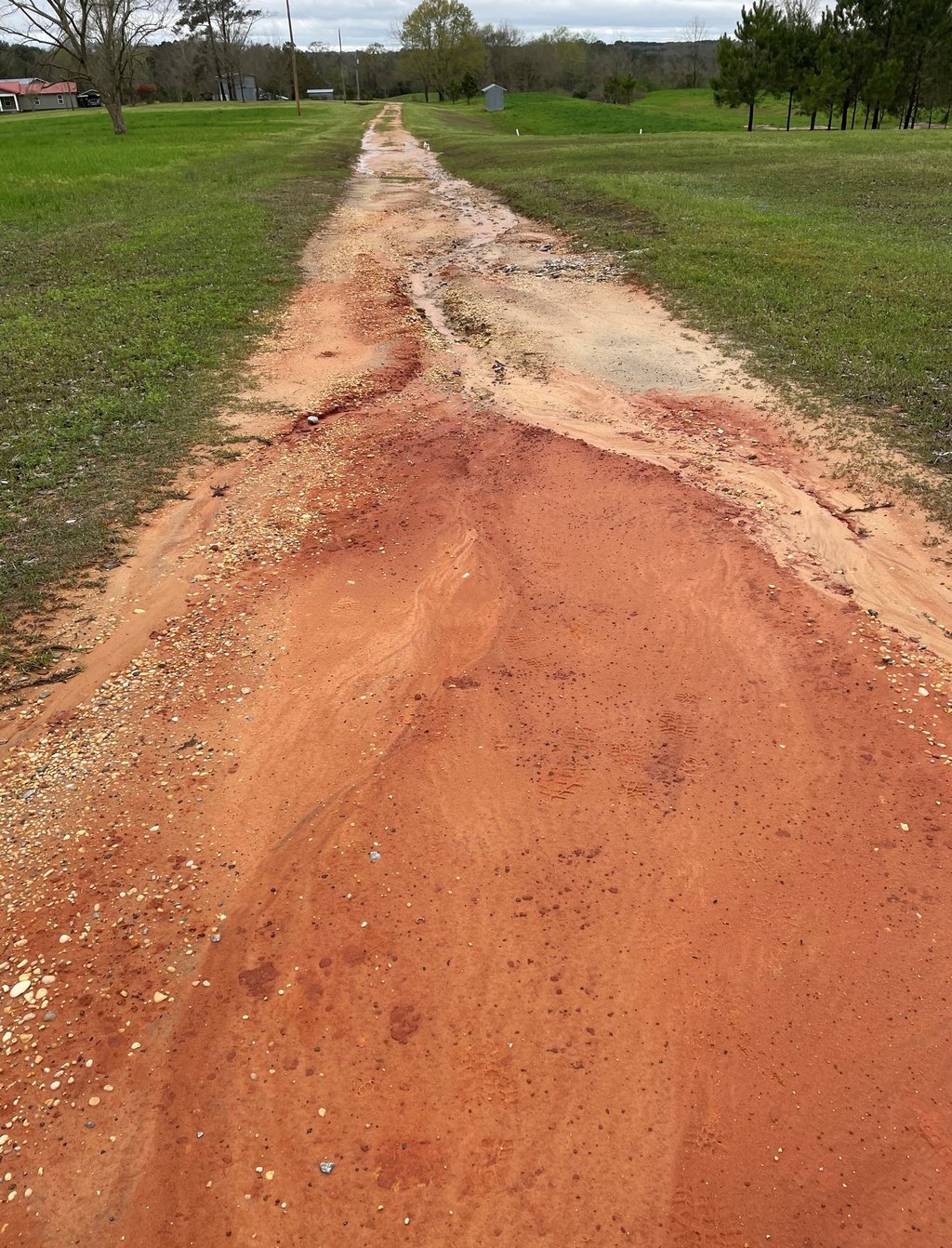 Severe thunderstorm dumped over 6" of rain in 4 hours severely washing away the driveway that had just been boxed graded.