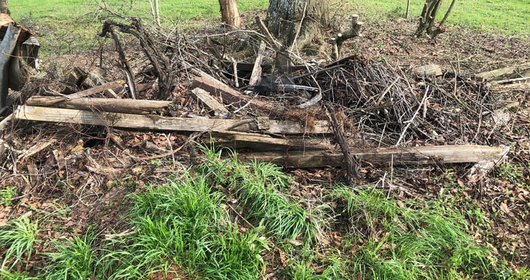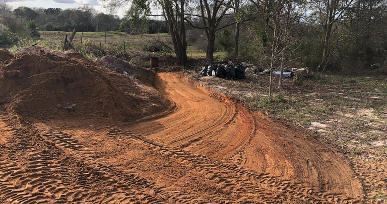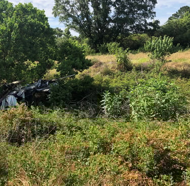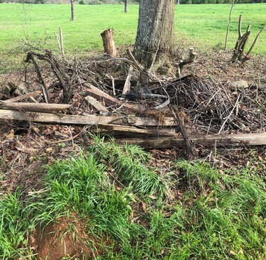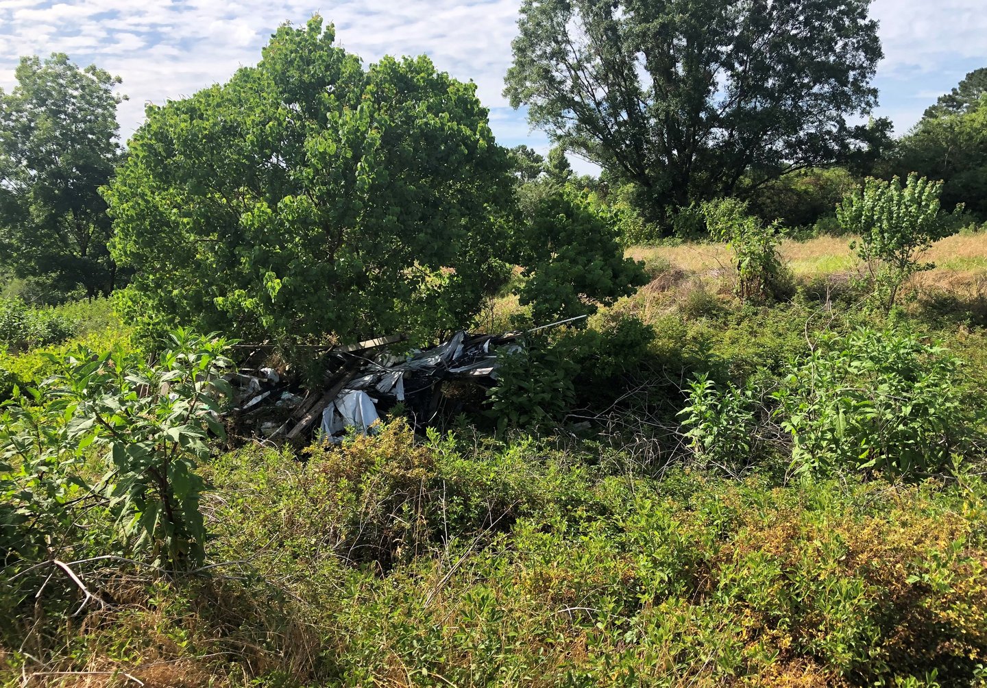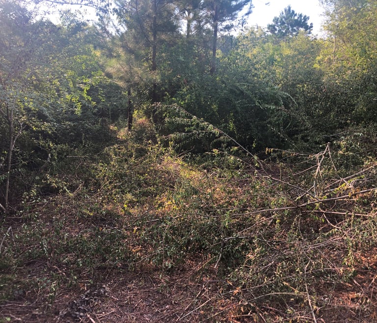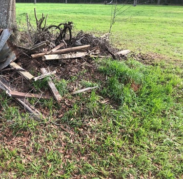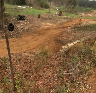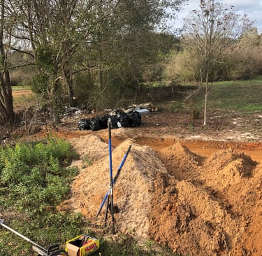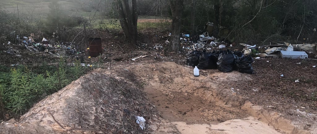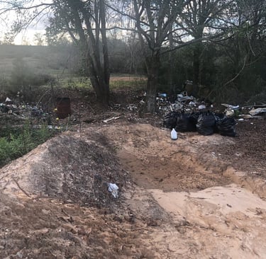 One of many dump sites that was discovered while clearing the underbrush. The run off from the front 10 acres flows through to the natural creek to the east of the property. Two 40 yard dumpsters were filled and haul to the local landfill. All the metals was separated and hauled to the recycling center in Andalusia.