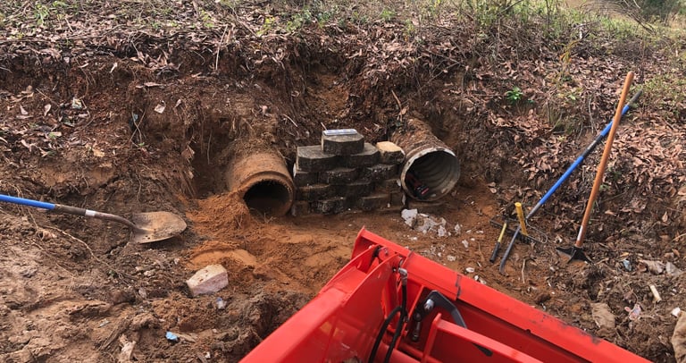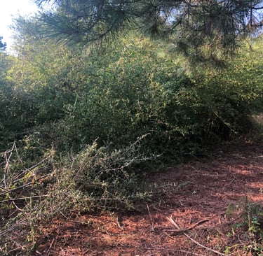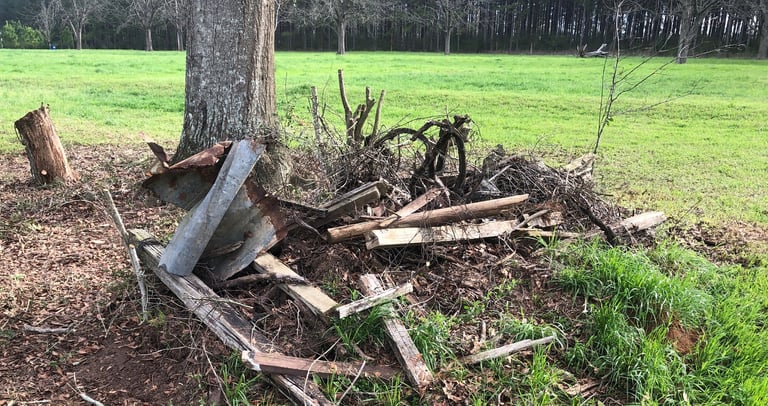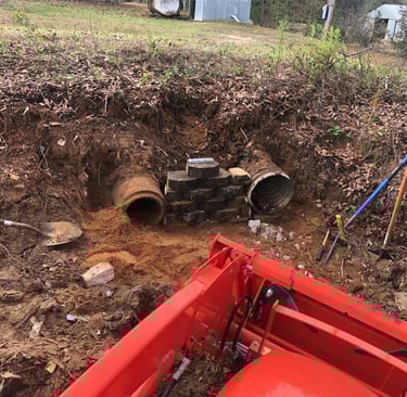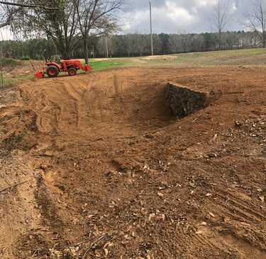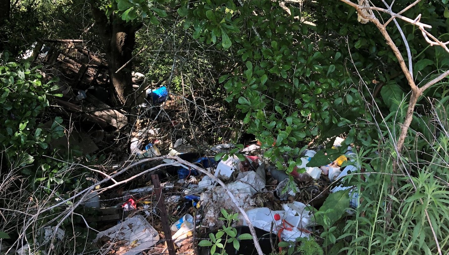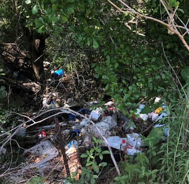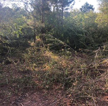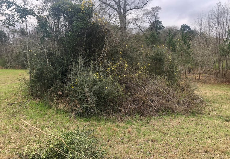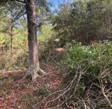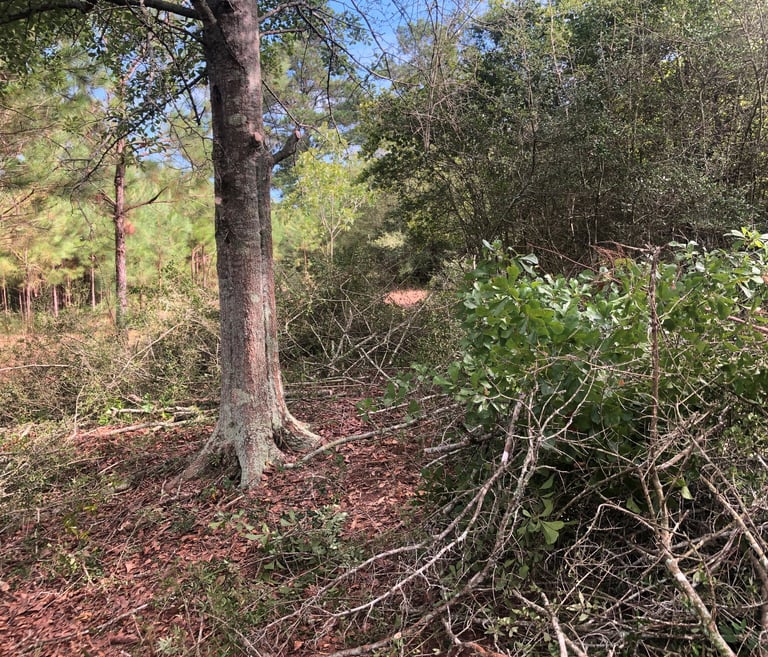 One of many dump sites that was discovered while clearing the underbrush. The run off from the front 10 acres flows through to the natural creek to the east of the property. Two 40 yard dumpsters were filled and haul to the local landfill. All the metals was separated and hauled to the recycling center in Andalusia.