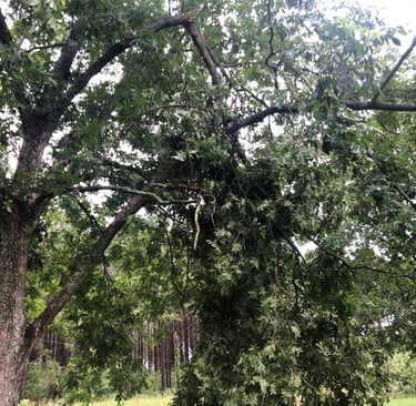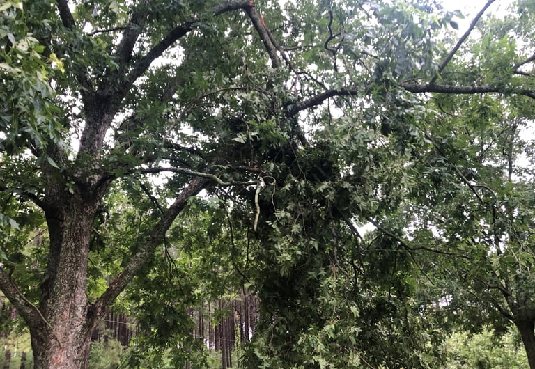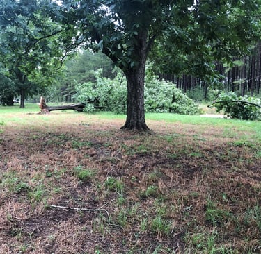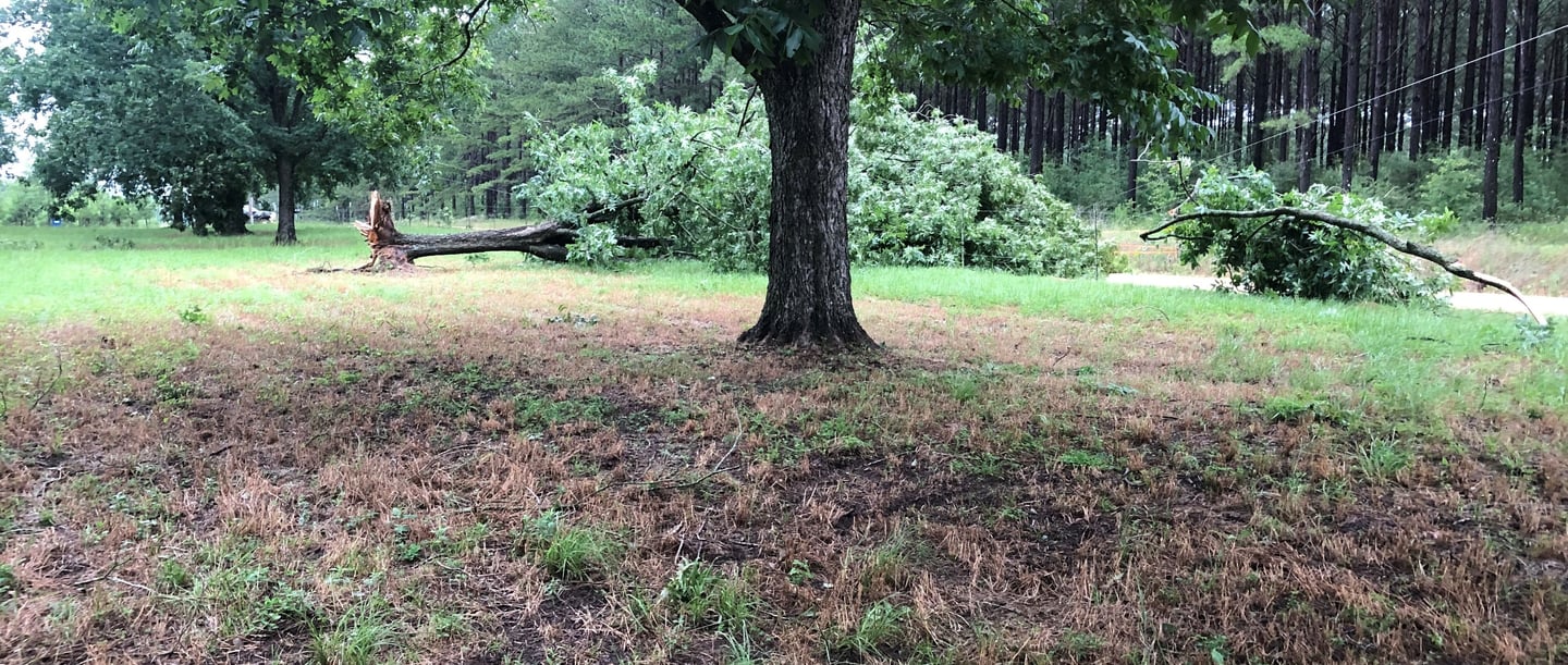 Severe storm damage. Linear wind event broke several branches and uprooted one of our pecan tree falling on the power line.